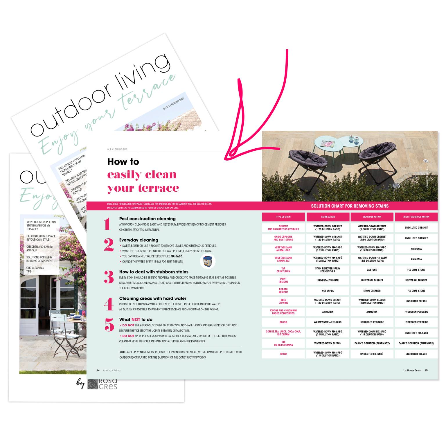 Если вы хотите узнать больше о том, как выбрать напольное покрытие для улицы, и познакомиться с решениями Rosa Gres для лестниц, дренажных каналов или стен более чем в 30 цветах, скачайте руководство "Жизнь на открытом воздухе". (https://rosagres.com/upload/magazine/outdoor-living.pdf) Оно поможет вам спроектировать, украсить и защитить вашу неповторимую террасу.